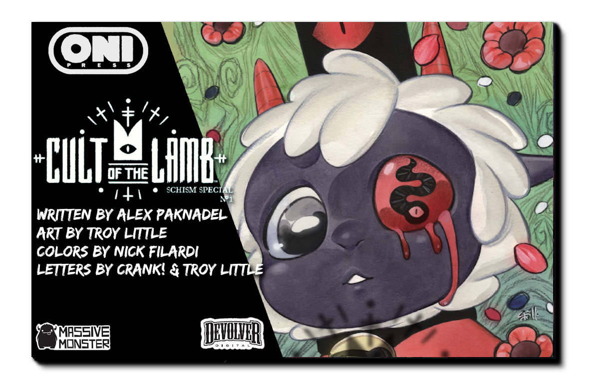 In partnership with Massive Monster and Devolver Digital, the record-setting comic book expansion of CULT OF THE LAMB is BACK in an ALL-NEW, 48-PAGE SPECIAL from writer Alex Paknadel (Astonishing X-Men) and artist Troy Little (Rick and Morty vs. Dungeons & Dragons)!