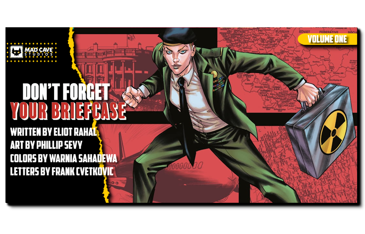On Tuesday, March 17th (bookstores) & Wednesday, March 18th (comic shops), Mad Cave Studios is releasing DON’T FORGET YOUR BRIEFCASE Vol. 1 TPB!