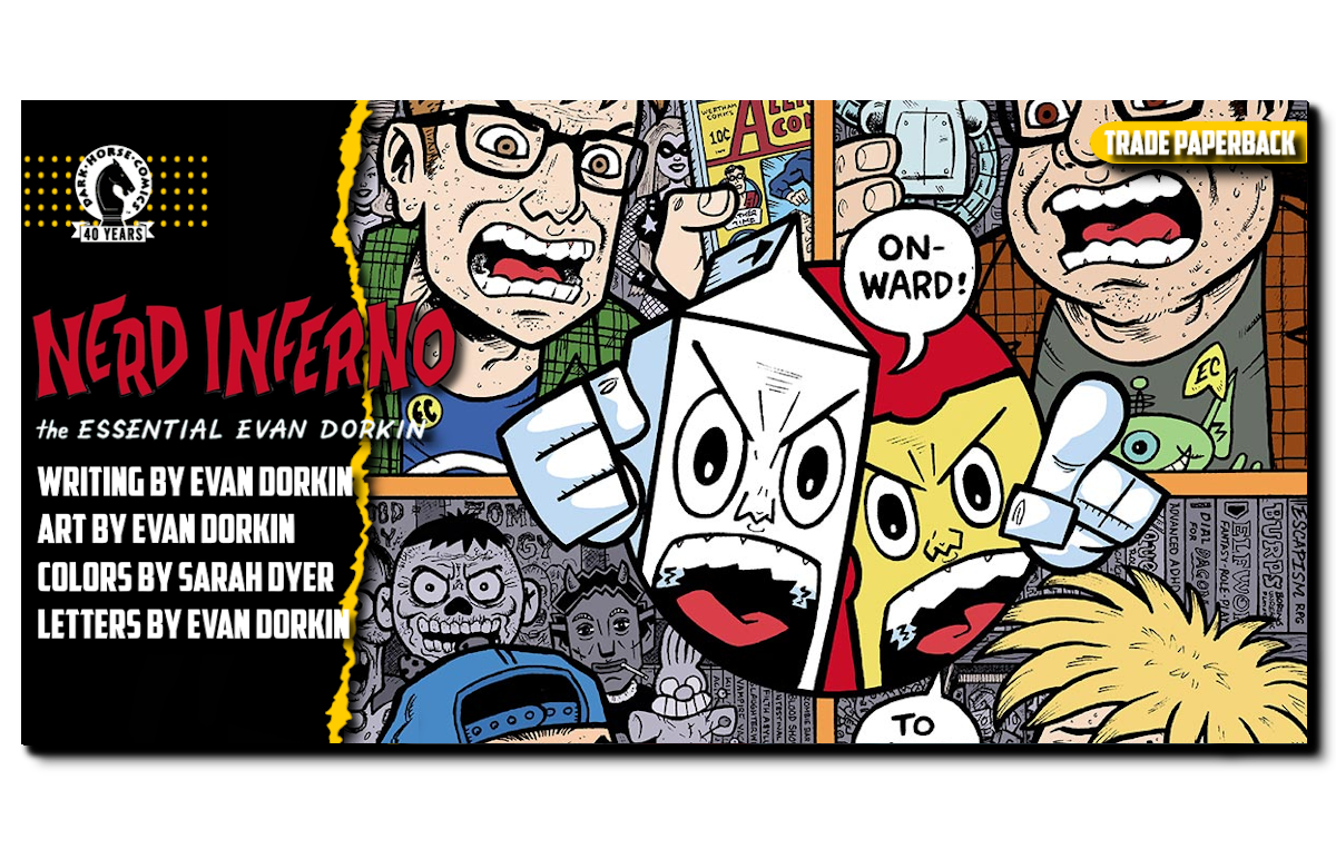 On Tuesday, April 28th (bookstores) & Wednesday, April 29th (comic shops), Dark Horse Comics is releasing NERD INFERNO: The Essential Evan Dorkin TPB!