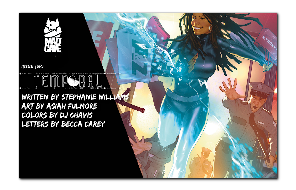 On Wednesday, November 19th, Mad Cave Studios is releasing TEMPORAL #2 (of 5) – a wildly imaginative five-issue limited series from acclaimed writer Stephanie Williams (Nubia and the Amazons, Moon Girl and Devil Dinosaur), with incendiary interior art by Asiah Fulmore (Amethyst: Princess of Gemworld, Batman: The Brave and the Bold), and featuring vivid colors by DJ Chavis, and letters by Becca Carey.