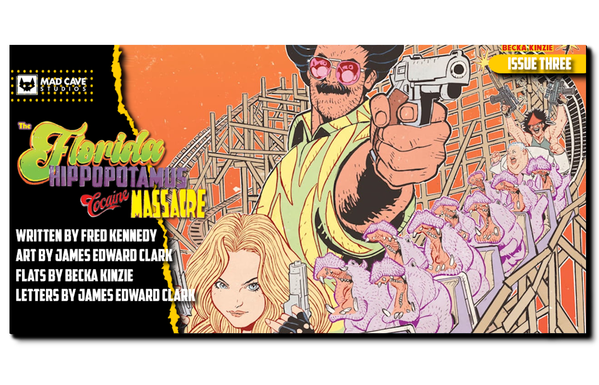 On Wednesday, April 22nd, Mad Cave Studios is releasing THE FLORIDA HIPPOPOTAMUS COCAINE MASSACRE #3!