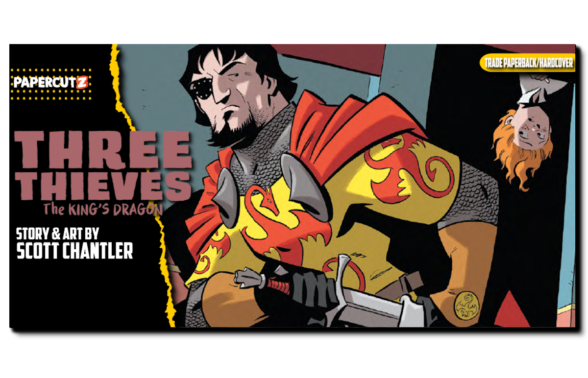 On Tuesday, February 3rd (bookstores) and Wednesday, February 4th (comic shops), Mad Cave Studios‘ Papercutz imprint is releasing a trade paperback and a hardcover edition for THREE THIEVES Vol. 4 “The King’s Dragon”!